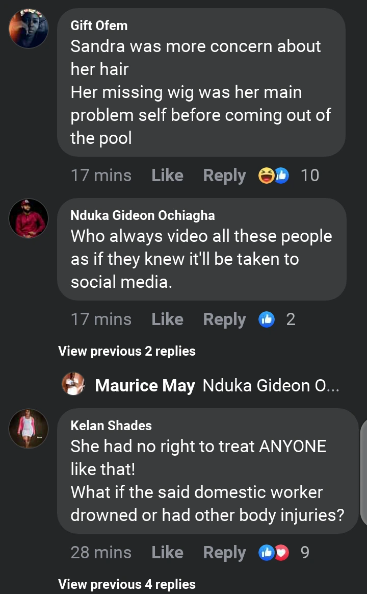 She was spotted arguing with a domestic worker close to the swimming pool. She flared up in the process and pushed her into the nearby pool.