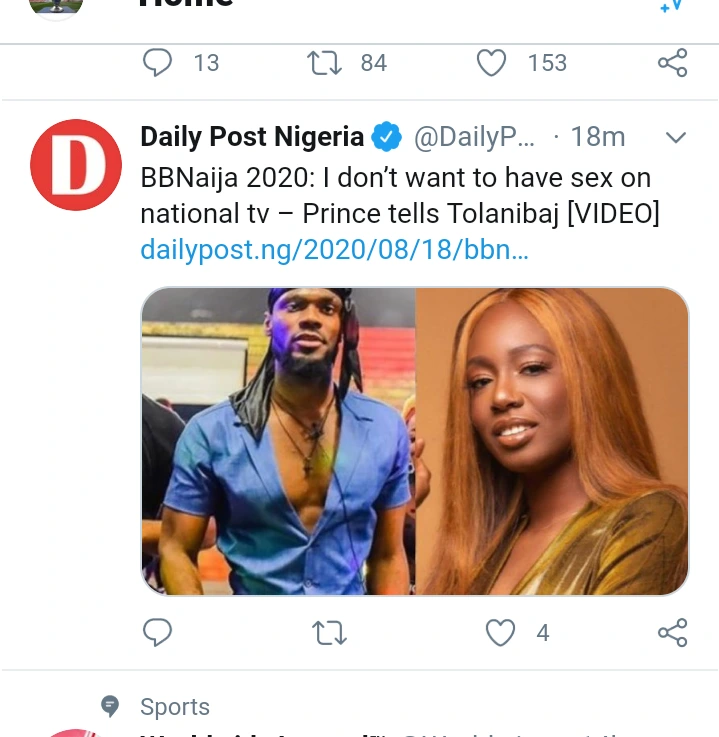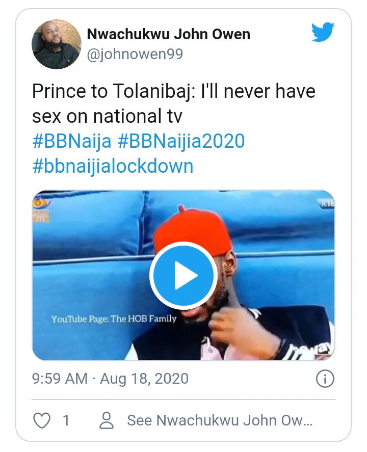 Prince of Big Brother Naija housemate, has revealed to his lover, Tolanibaj in the house on the issue of making out on National TV